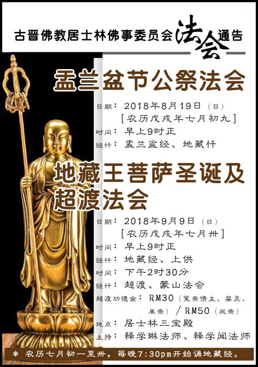 2018盂兰盆节公祭法会及地藏王菩萨圣诞及超渡法会