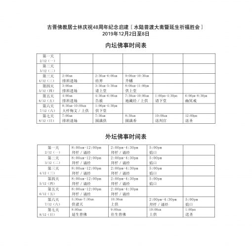• 全年法会通告