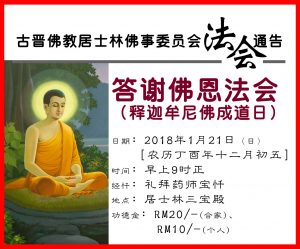 古晋佛教居士林于12月26日至30日启建盛大的梁皇宝忏斋天、祈福、超渡大法会。